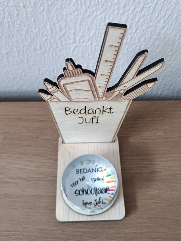 De houder kan evt. gepersonaliseerd worden met de naam van de juf of meester