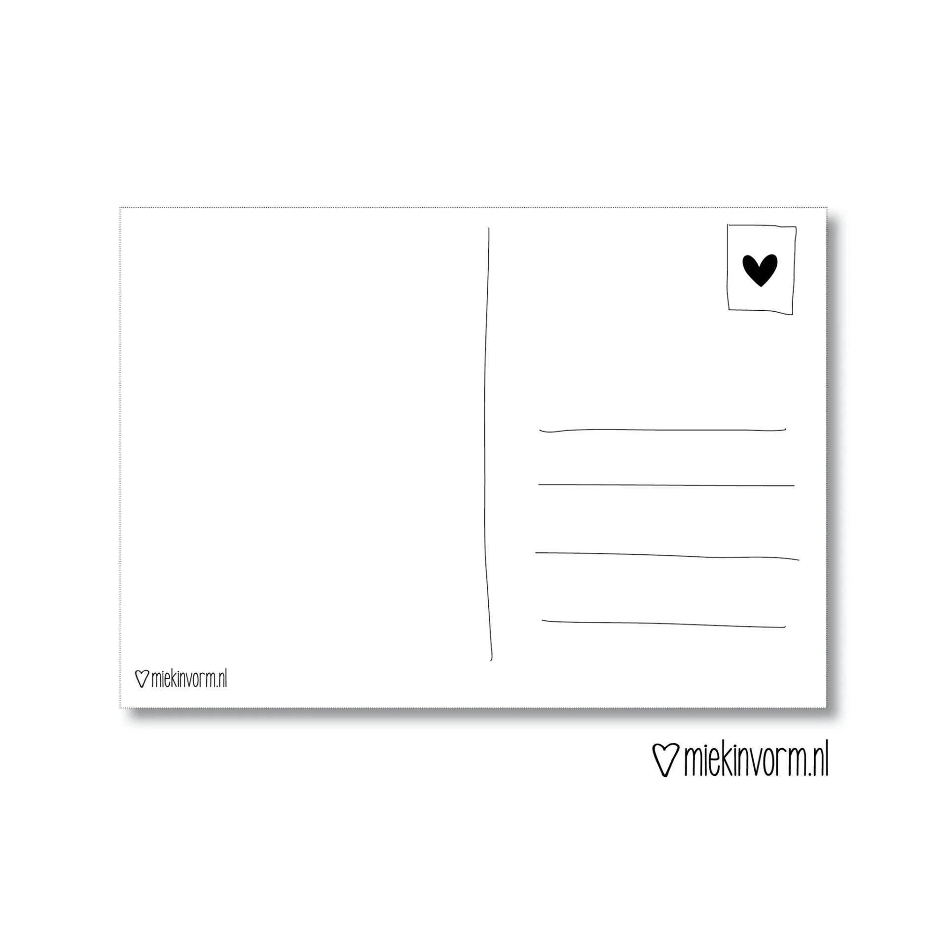 De kaart is A6-formaat en is geprint op stevig kaartpapier met een ruwe matte uitstraling.